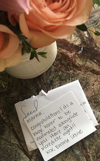 From Emilia Clarkemaking her way to the ceremony to Marina de Tavira receiving a sweet note and flowers from fellow nominee Emma Stone, we are taking you inside the Oscars through the social media accounts of the nominees and presenters.