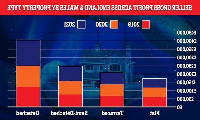 Owners of detached houses accounted for 23 per cent of sellers – and 37 per cent of profit – in England and Wales last year, up from 20 per cent in 2019.