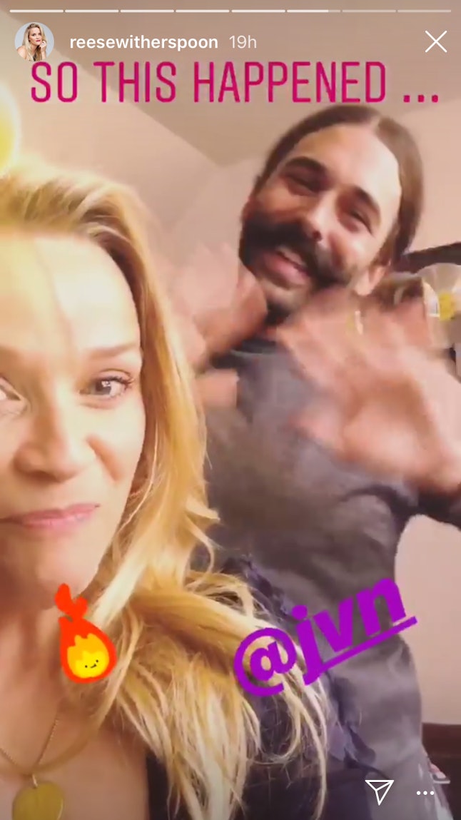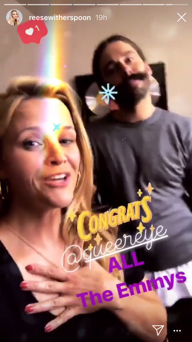 The last story the actor posted of the duo didn’t give away any details on their "secret" project, but it did provide Witherspoon an opportunity to gush over Van Ness. "I do wanna say before I have to go, ’cause I have to run: Congratulations on your Emmys!" Witherspoon said. Queer Eye has already taken home Emmys for Outstanding Casting For A Reality Program, Outstanding Picture Editing For A Structured Or Competition Reality Program, and Outstanding Structured Reality Program. In the video, Van Ness replied he loved her "to pieces," and they shared a very sweet hug.