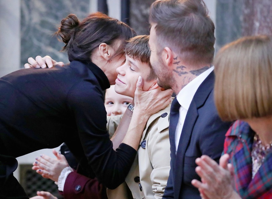 Victoria planted a kiss on her son’s cheek before her February 2018 fashion show during New York Fashion Week.