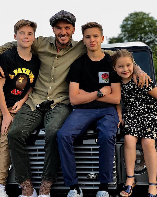Cruz, Harper and Romeo joined the pre-game festivities for their dad’s Match for Children in aid of UNICEF in November 2015, while Brooklyn played during the face-off game between Great Britain and Ireland vs. The Rest of the World. All four kids wore matching red to support their dad’s jersey.