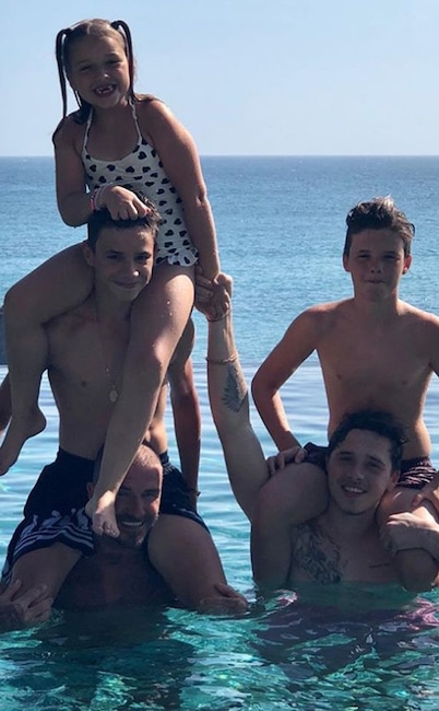 “Kisses from us all x Happy Summer!” Victoria captioned this adorable photo of her kids on holiday in summer of 2018.