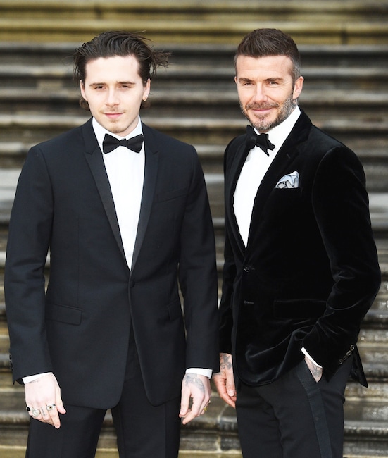 David Beckham and his oldest son, Brooklyn Beckham were twinning as they stepped out at the Our Planet premiere in April 2018.