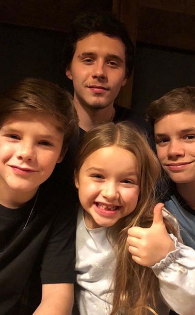 David snapped a quick pic of his daughter Harper and sons Brooklyn, Romeo and Cruz right before Victoria’s Fall 2014 collection show during New York Fashion Week.