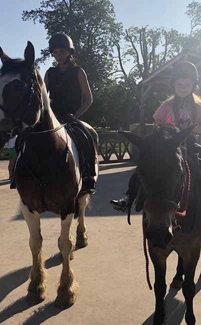 “Perfect end to the most perfect weekend x Riding with my baby in the sunshine ☀️ Kisses from us both x,” Victoria wrote alongside this pony pic.