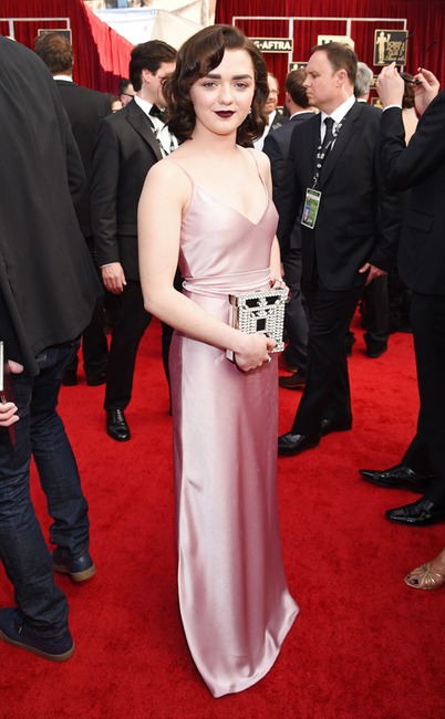 The Game of Thrones star showed the impact of a slip dress with this pale pink number by Charlie Brear.