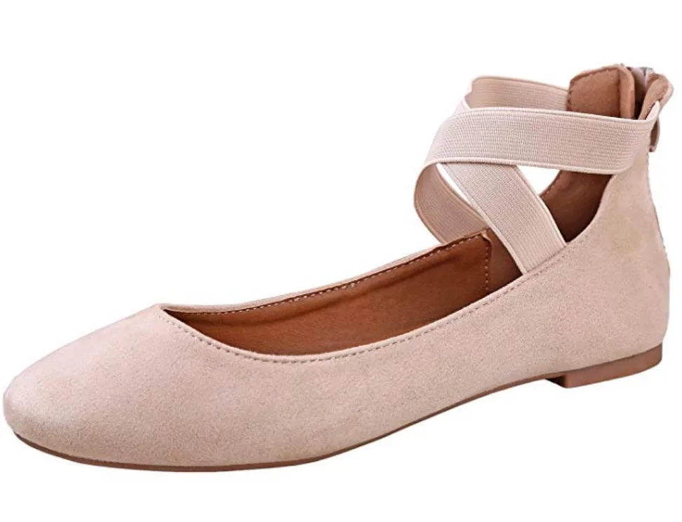 If you’re looking for a slightly dressier option, these strappy ballet flats are the perfect addition to your wardrobe. Made from a soft synthetic material, this shoe stretches with your foot throughout the day. On top of that, the wide, rounded toe offers plenty of extra space so your bunion won’t become irritated. And the criss-cross straps at the ankle keep the whole shoe firmly in place. If pink is the color for you, you can get them in one of the other 30 shades these flats come in.