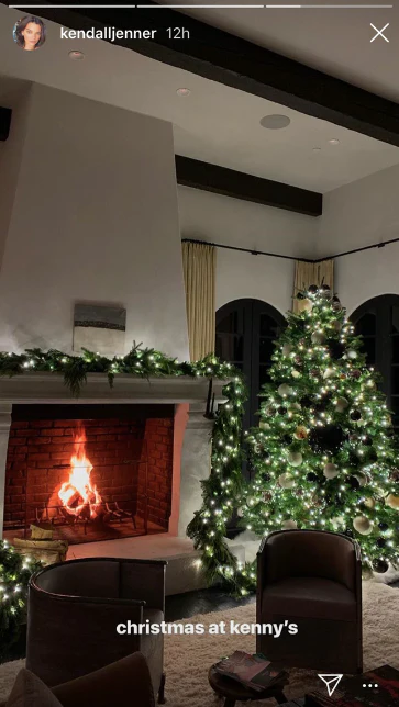 Last but certainly not least, we have Kendall Jenner’s simple-yet-sophisticated setup, with garland and lights neatly displayed over her fireplace and a lovely Christmas tree propped up in the corner. The look is very classic and chic — and we’d expect nothing less from our girl Kendall.