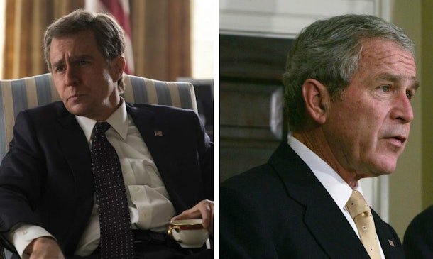 When one thinks "George Bush impression" one usually thinks Will Ferrell, not Sam Rockwell. But though Ferrell is actually credited as a producer on the film, in this case, he stayed off-screen and let someone else nail the Bush impression.