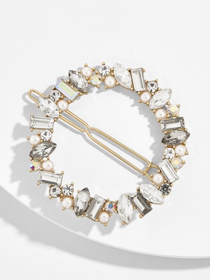 If you want to hop on this trend, like stat, you may wanna cop a hair clip like this Nadine Crystal Hair Clip from Baublebar, embellished with different rhinestones and gems and can be worn to hold back flyaways or added to any up-do as a shiny accent.