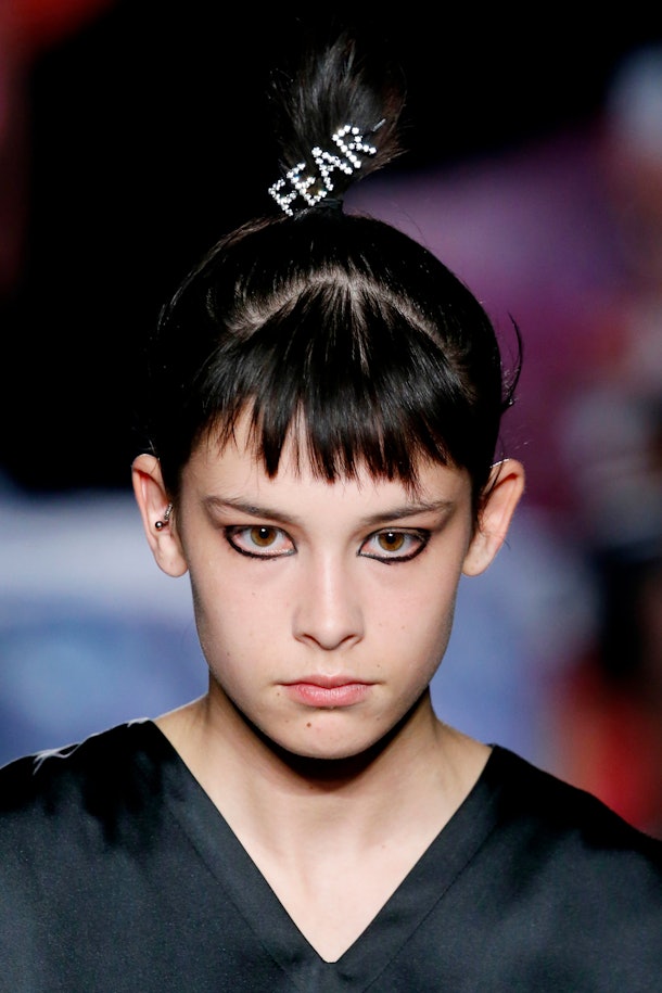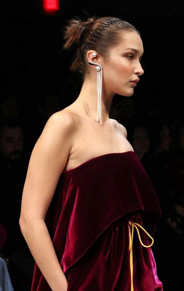 To round out the list of the revamped hair accessories from the ’90s that are trending this winter, Prabal Gurung made the case for the resurfacing of the zig-zag comb headband during the brand’s AW18 fashion show. The designer chose to add the plastic band to low buns on the models ias a way to tame the hair and make it appear sleek in the front. Models like Ashley Graham and the Hadids wore the inexpensive hair accessory during the show and have, clearly, played a major role in inspiring its comeback.