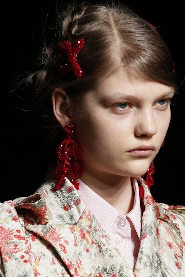 The good ol’ snap clips that you used to wear in the fourth grade to hold your overgrown bangs back have made a very chic, sparkly comeback and are now available in all sorts of shapes, as seen in AW18 shows like Simone Rocha.