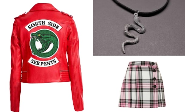 Riverdale Cheerleading Practice Costume ($39.99 at Spencer’s), Riverdale Southside Serpents Faux Leather Jacket ($69.90 at Hot Topic)