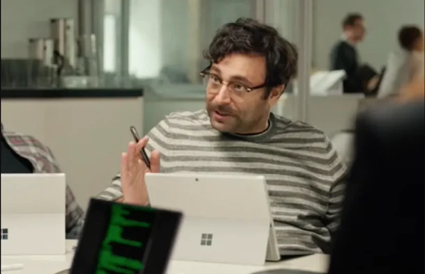 A couple episodes later, we see Ryan again in a whole new capacity and with an entirely different look. Now, he is Nadia’s boss at her video game coding job. And yes, the other two bosses are the other two jerky guys from the bodega. Ryan’s two accomplices who seem tied to him in each time loop are unnamed characters played by Ken Beck and Max Knoblauch.
