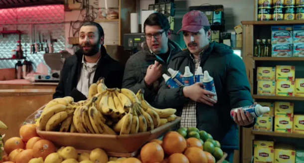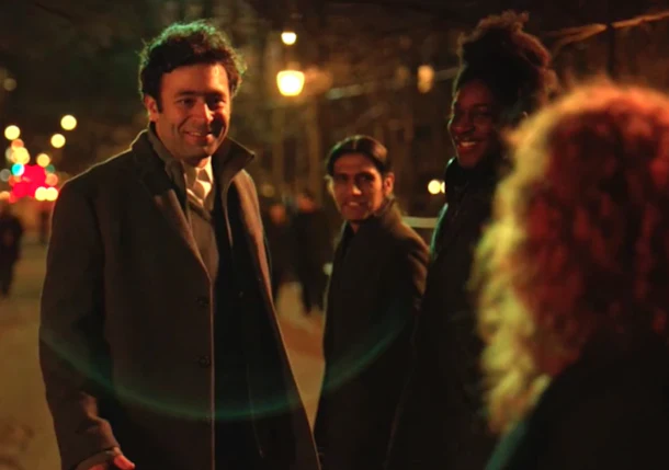 And finally, Ryan appears without his two friends at the end of the series, as a stranger who bumps into Nadia in the park. This time, he has two different friends alongside him.