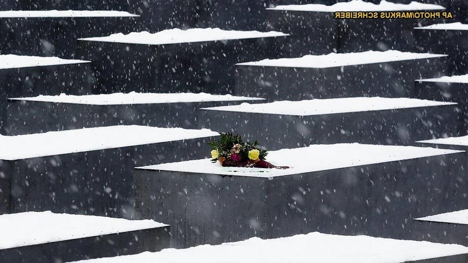 In this file photo taken Jan. 27, 2020, people are seen arriving at the site of the Auschwitz-Birkenau Nazi German death camp, where more than 1.1 million were murdered, in Oswiecim, Poland, for observances marking 75 years since the camp’s liberation.