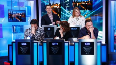 Carlson, seen with Ed Kavalee, Mick Molloy, Kitty Flanagan and Sam Pang is a regular on Have You Been Paying Attention?.