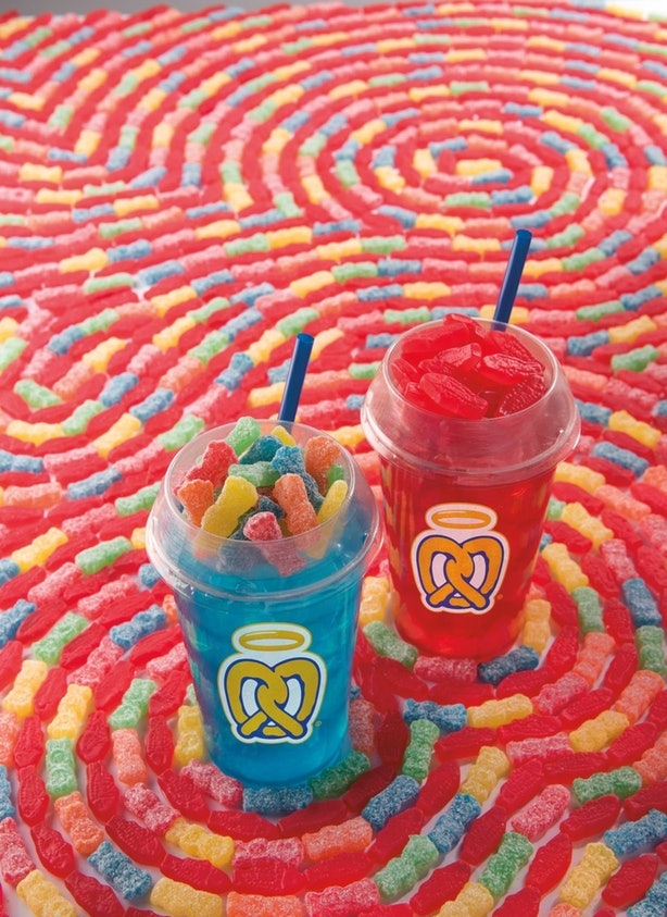 Plus the timing of these hitting shelves couldn’t be better, because it means that there will be something to look forward to now that the rug is going to be gently pulled out from under our beloved Sour Patch Kids come August 12 — which is the day that Auntie Anne’s lemonade mixers promotion will end, meaning that customers will no longer be able to take advantage of the option to top their flavored lemonades with Sour Patch Kids and Swedish Fish. Of course, nothing is stopping you from bringing your own and DIY-ing a lemonade mixer, but at least now you have the added perk of being able to put Sour Patch candy corn on it instead!