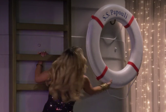 And after James and Millie were seen cuddling on the ship’s bow, D.J. jokes that "the night stared as Charlie’s Angels and it ended at the Love Boat," also another great ’70s show. But while the episode was all ’70s — from the hair to the clothes to the diamond theft plot to the cheesy music that played — there was one plain old Full House reference that you might have missed in all the ’70s chaos.
