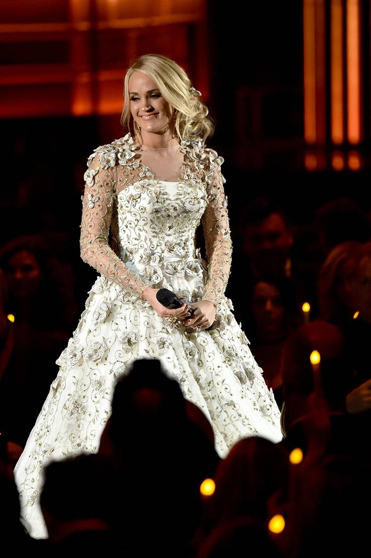 Was it her wedding day when she wore this white gown? No, it was just the CMAs, but when you are Carrie Underwood, you can use any excuse to wear a gown. She is a creative person and that’s clear in her style choices.