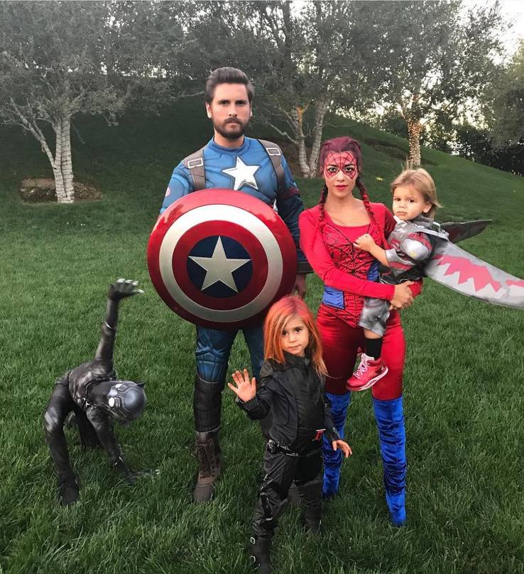 Have you noticed how most celeb moms post their Halloween costumes on social media without their kids? They’ll go all-out with the revealing outfits, but they are missing the biggest component – Halloween when you have kids is all about the family candy. In 2016, despite not being with Scott Disick, Kourtney put on a display of family unity with this awesome superhero setup. Kourtney dressed up as Spider-Man, Scott went full Captain America, while the kids took care of Black Panther, Black Widow, and Falcon.