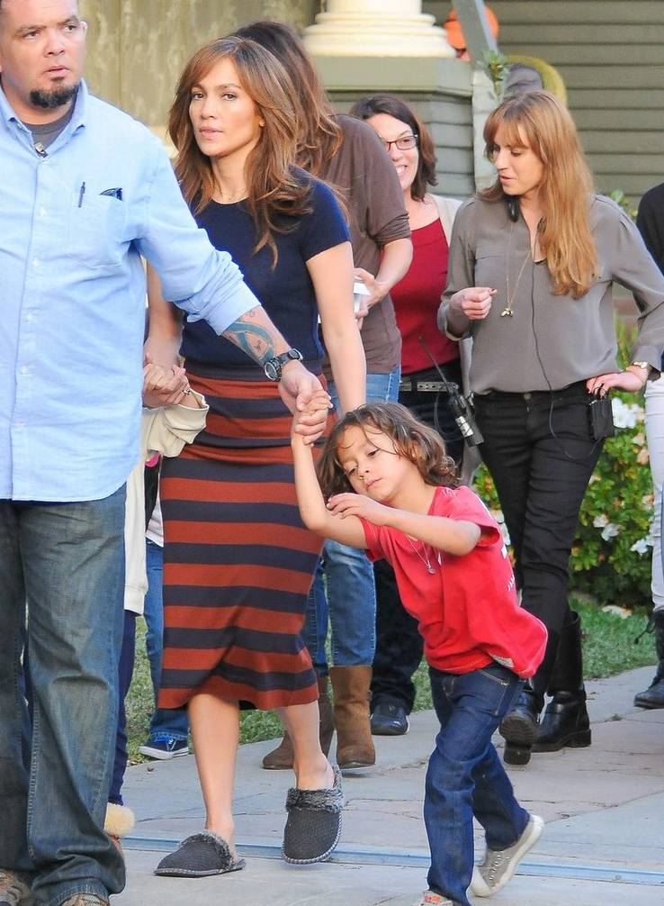 11 JLO BRINGS HER TWINS ON SET