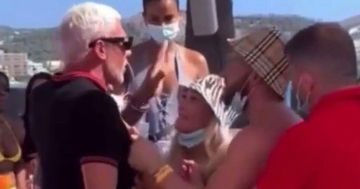 Wayne Lineker kicked off at a man and booted him out of his Ocean Beach Ibiza club after he was heard calling him a "nonce".