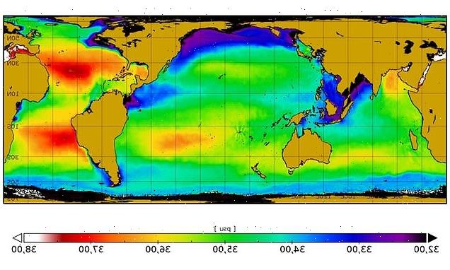 Map showing the average sea surface salinity of the world’ s seas and oceans during the period 2011-2018