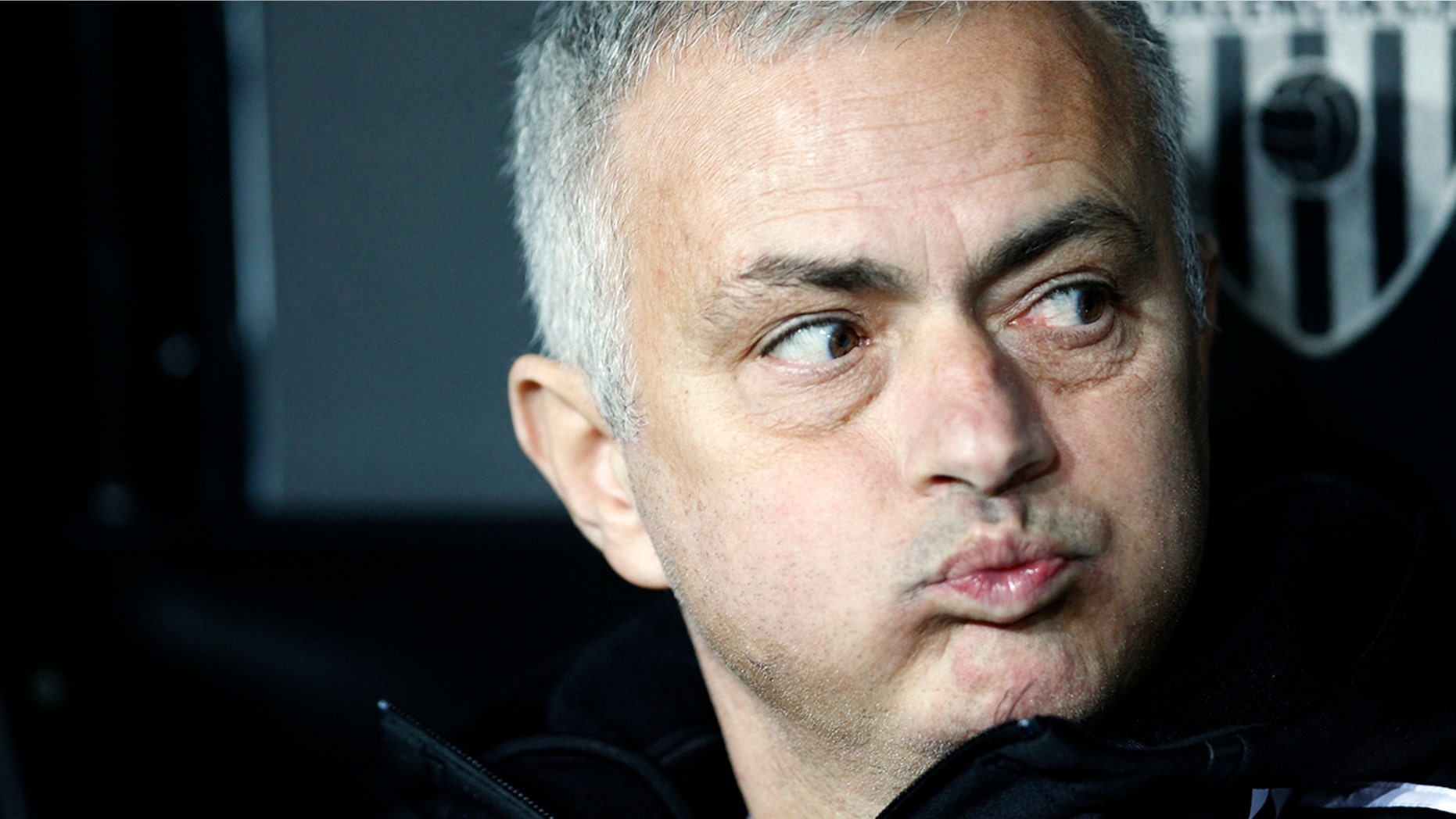 Dec.12:  Manchester United coach Jose Mourinho looks out from the bench prior a Group H Champions League soccer match between Valencia and Manchester United at the Mestalla Stadium in Valencia, Spain. (AP Photo/Alberto Saiz)
