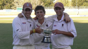 Brendan Lyon, Ryan Carters and Nathan Lyon after winning the 2007-08 Douglas Cup with Wests-UC.