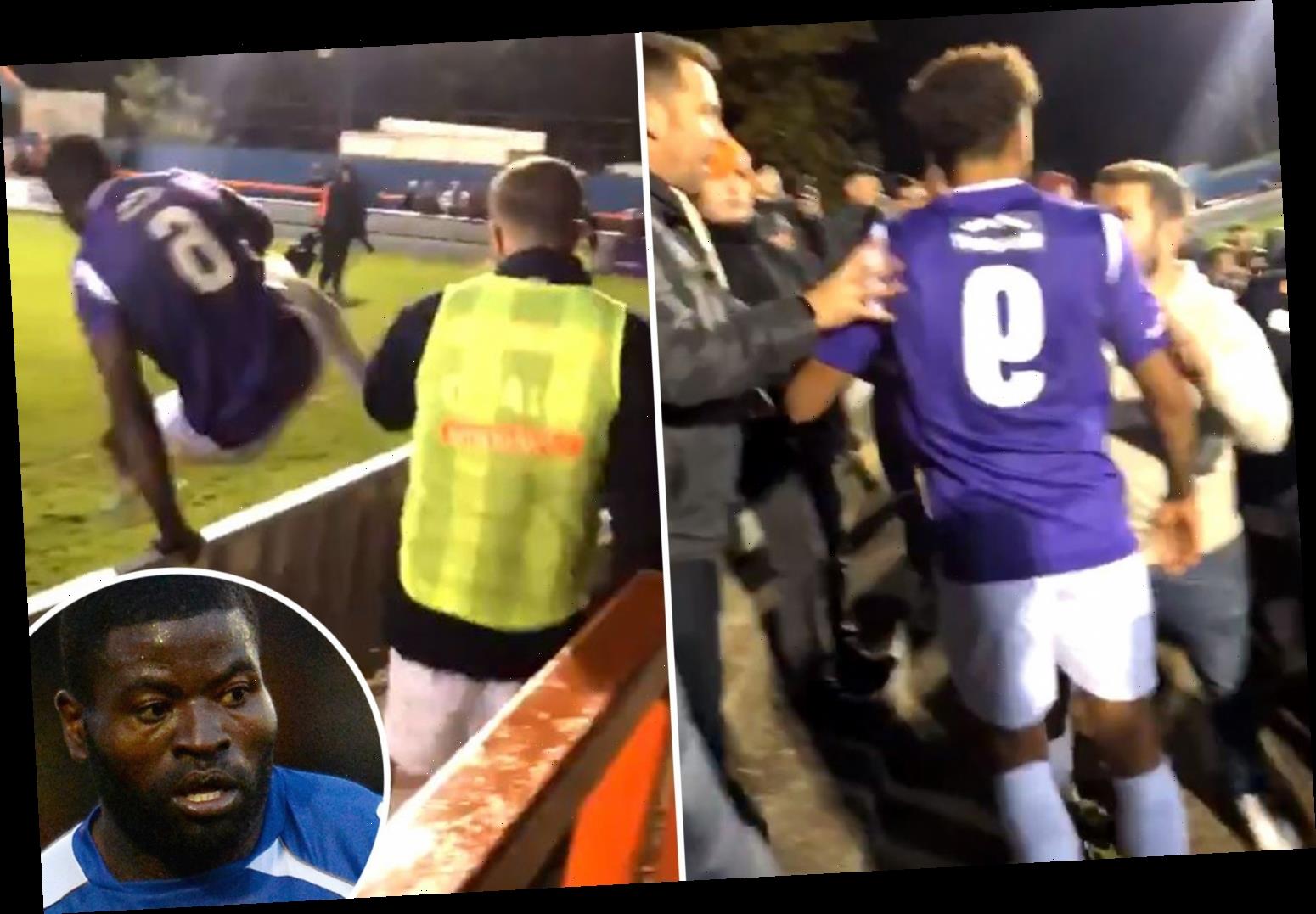 FORMER Wolves star George Elokobi went into the stands to reportedly confront a fan after his Maidstone United side drew at Braintree Town.