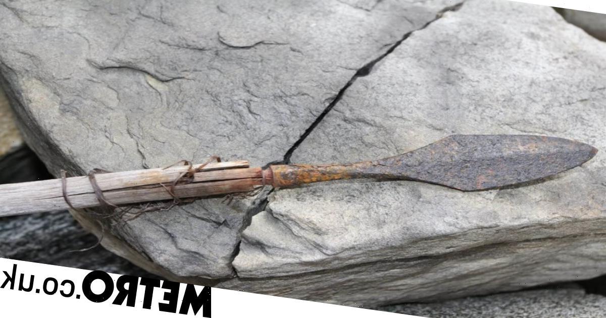 Archaeologists have previously found Viking treasures in the Lendbreen ice patch, after discovering a hoard of artefacts in 2011, such as spears and armour.