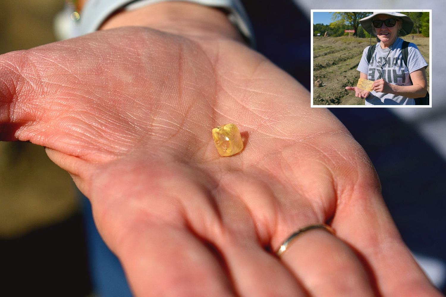Noreen Wredberg, from California, was in the Crater of Diamonds State Park in Arkansas last month when she spotted the yellow stone on the ground.