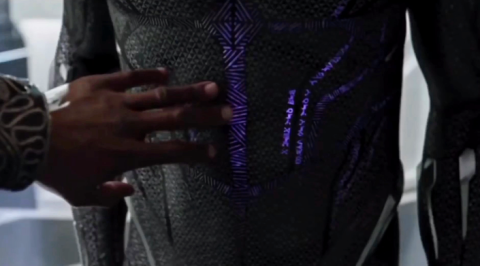 Reddit user thecruiser has discovered the exact meaning of the Wakandan text that appears when T’Challa first tests out his new outfit.