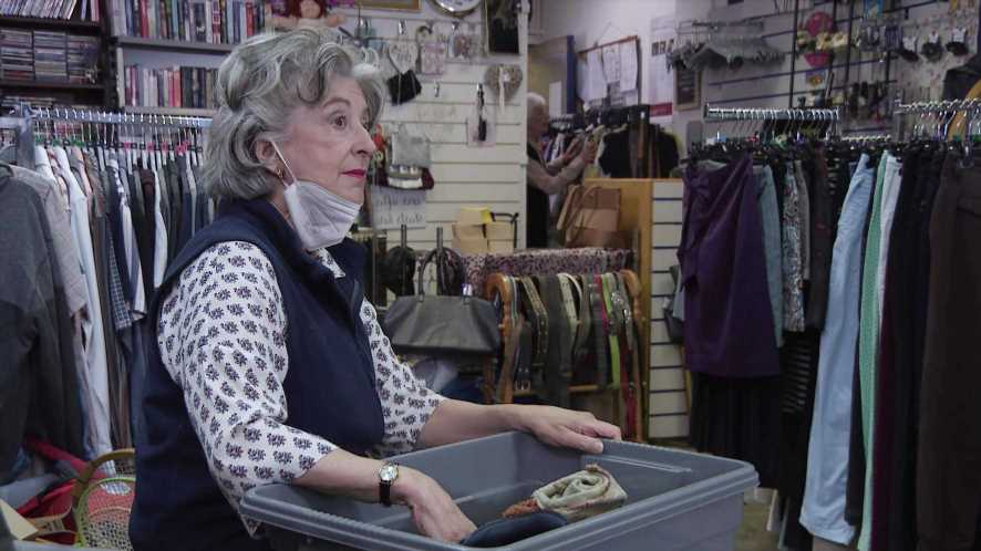 During Evelyn’s first shift at the charity shop, Joy lays down the ground rules whilst Evelyn is forced to bite her tongue.