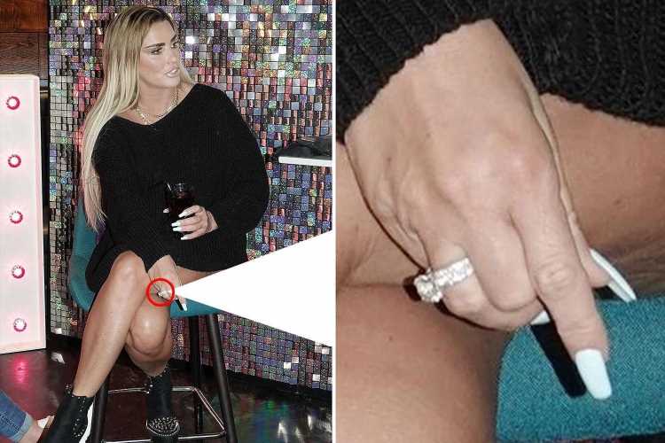 KATIE Price appeared to wear her "stolen" £50,000 engagement ring at her make-up masterclass last night.