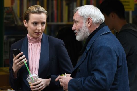 In season 1 episode 8 ‘God, I’m Tired’, Eve Polastri (Sandra Oh) and Villanelle’s handler Konstantin (Kim Bodnia) meets with Villanelle (Jodie Comer) at a cafe.
