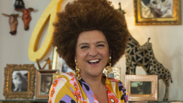 Chris Lilley as South African pet psychic Jana in the Netflix series Lunatics.Credit:Netflix