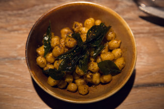 Steamed Masala chickpeas with fried curry leaves are a favourite childhood snack of chef Scully.Credit:Liliana Zaharia