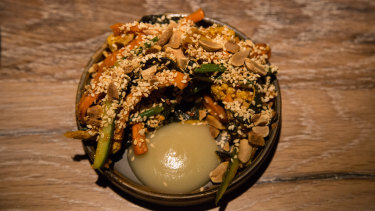 It's a crisp accompaniment to the spice sensation chef Scully presents over the next two hours beginning with the achar – South Asian pickle – which arrives covered in sesame seeds and toasted peanuts which give a glorious crunch to the wet vegetable slices.