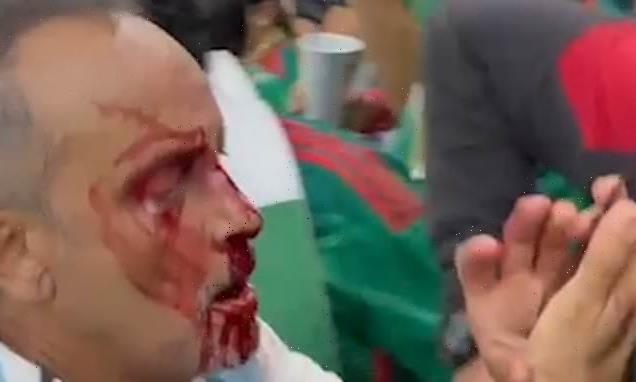 Horrific moment bloody Argentina fan is led away from stands following brawl with Mexico supporters as the two nations faced off at World Cup