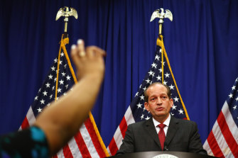Alex Acosta, US Secretary of Labor, held a media conference to defend his role in the Epstein case.Credit:Bloomberg