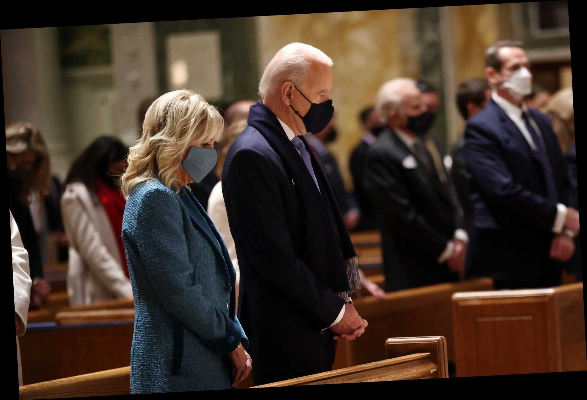 Pictures showed Biden in church alongside wife Dr Jill Biden as well as incoming vice president Kamala Harris and her husband Doug Emhoff.