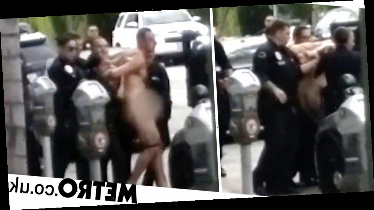 Thomas Dooley was filmed being bundled into a police car during the arrest on Santa Monica Boulevard last Thursday.