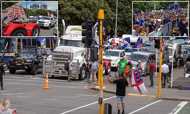 Now New Zealand is hit by Canada-style freedom convoy: Hundreds of drivers clog up Wellington in protest against vaccine and mask rules in latest attack on Jacinda Ardern’s hardline zero-Covid restrictions