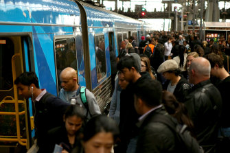 In times gone by: Commuters board a home-bound train at Southern Cross Station.Credit:Pat Scala