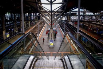 Southern Cross station on a Monday morning during one of Victoria’s lockdowns. Credit:Luis Enrique Ascui