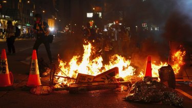 Hong Kong protests: Security forces and demonstrators face off in Mong Kok, Kowloon.Credit:Kirsty Needham